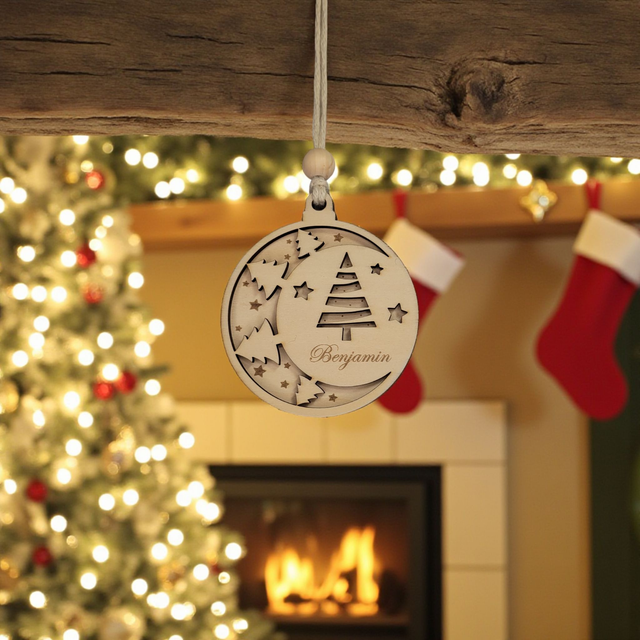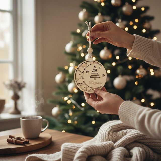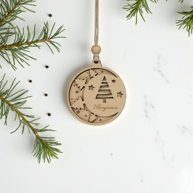 🎄 Boule de Noël personnalisée en bois – Gravée avec amour