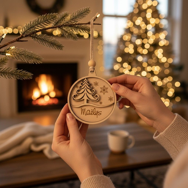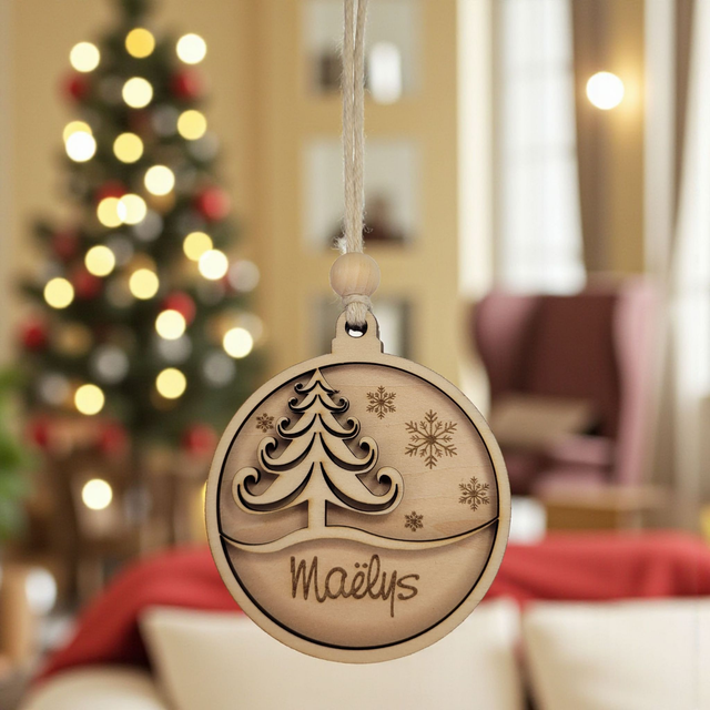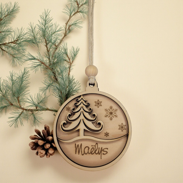Chaque boule est gravée avec soin, pour créer une décoration unique et pleine de tendresse. Elle peut être glissée dans une boîte à souvenirs ou accrochée chaque année comme un rituel doux et joyeux.