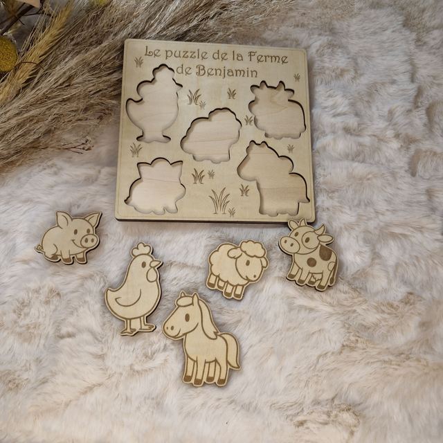 Puzzle bois personnalisé Animaux de la ferme pour enfant bébé, jeu éducatif et d'éveil - Idée cadeau garçon et fille