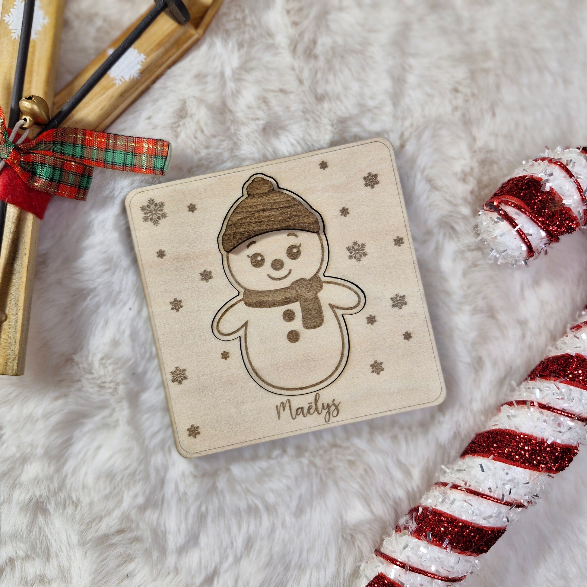 🎁 Carte cadeau surprise de Noël en bois – décor Femme de neige | Cadeau personnalisé et chaleureux