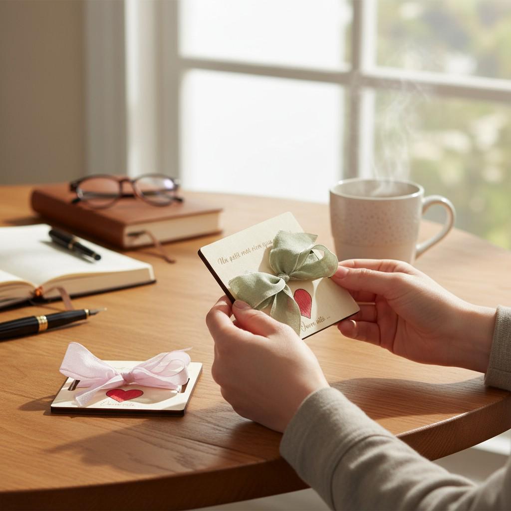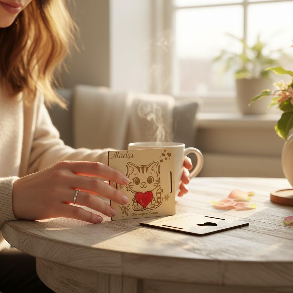Coucou les petits curieux ! Voici une jolie carte surprise en bois, toute douce et rigolote, décorée d’un petit animal (comme un renard, un lapin ou un ourson 🐰🦊🐻). Elle cache un message secret gravé rien que pour toi : un mot doux, une surprise ou un petit "je t’aime" à découvrir comme un trésor !