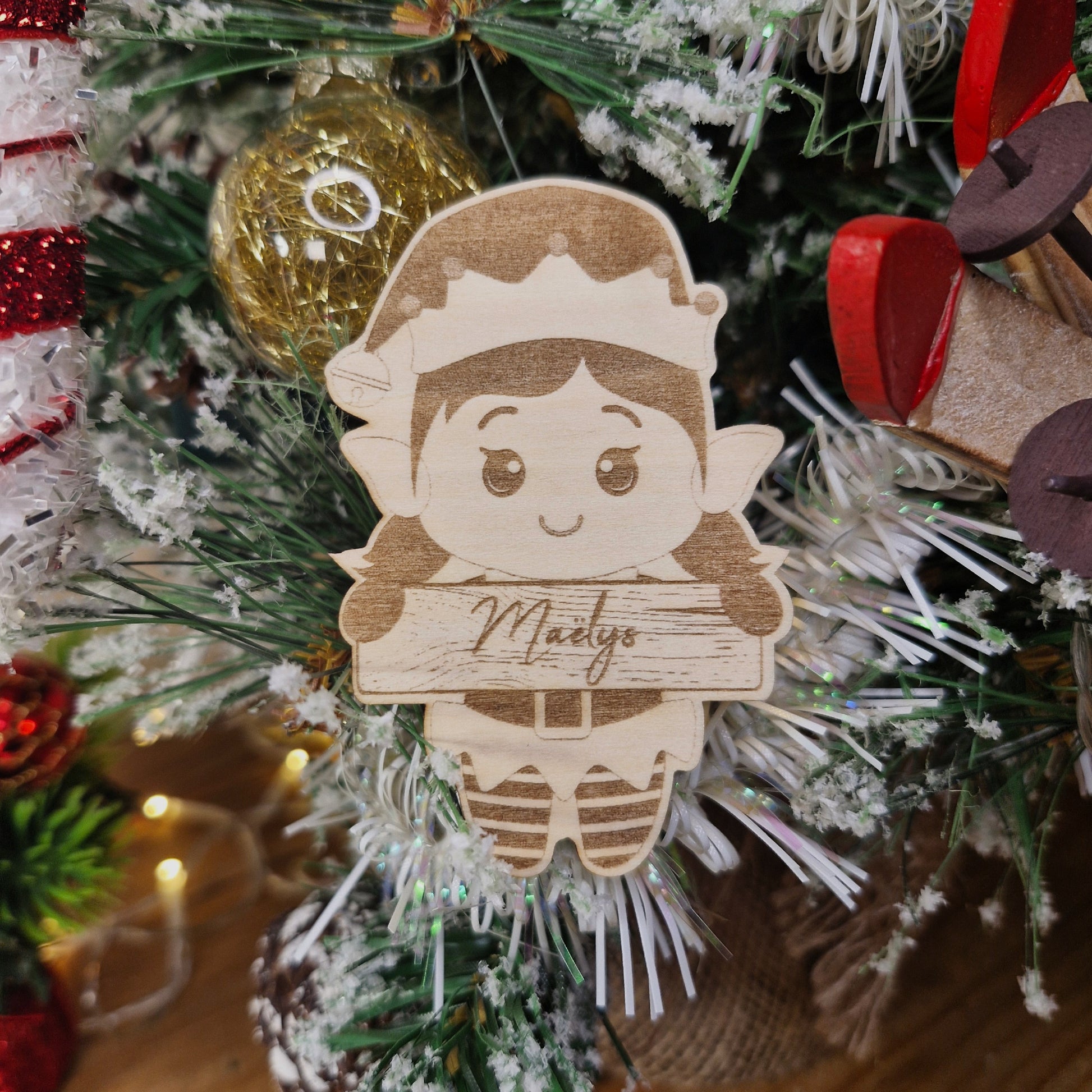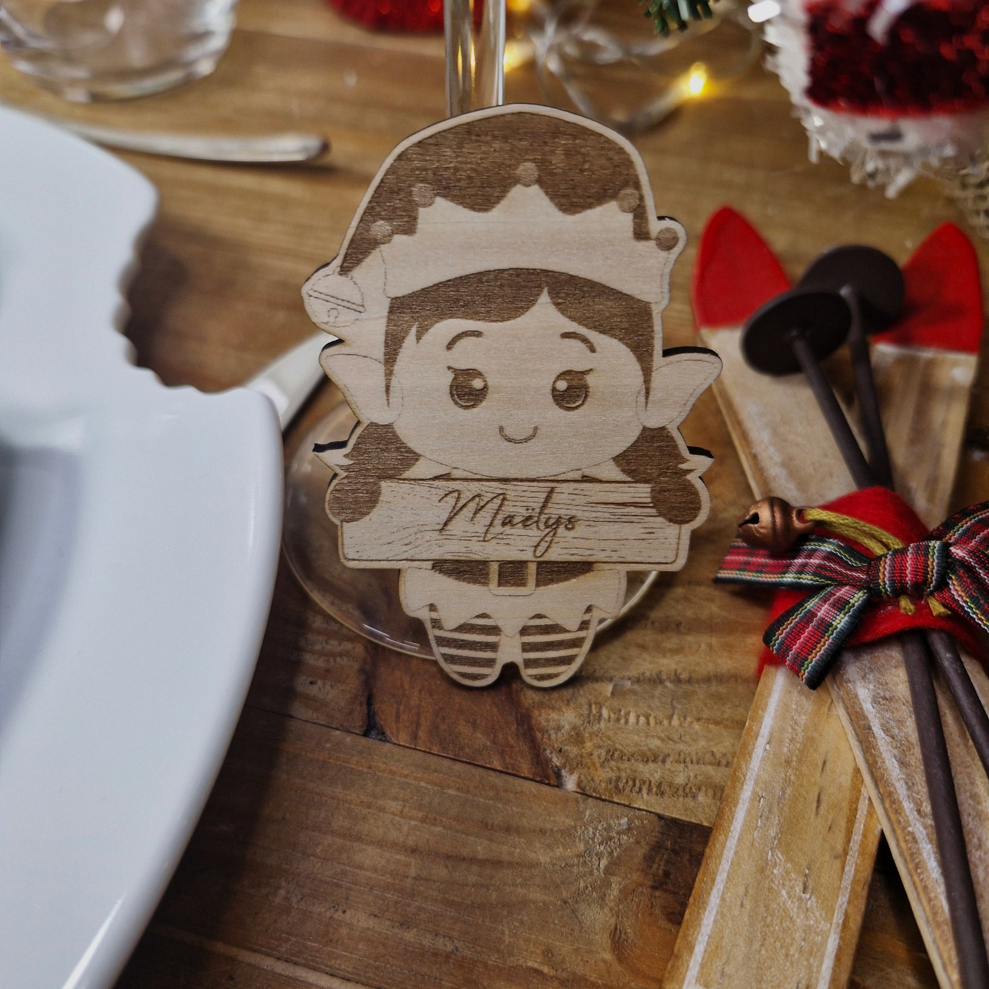 Marque-place de Noël personnalisé en bois - décoration marque place - Lutin