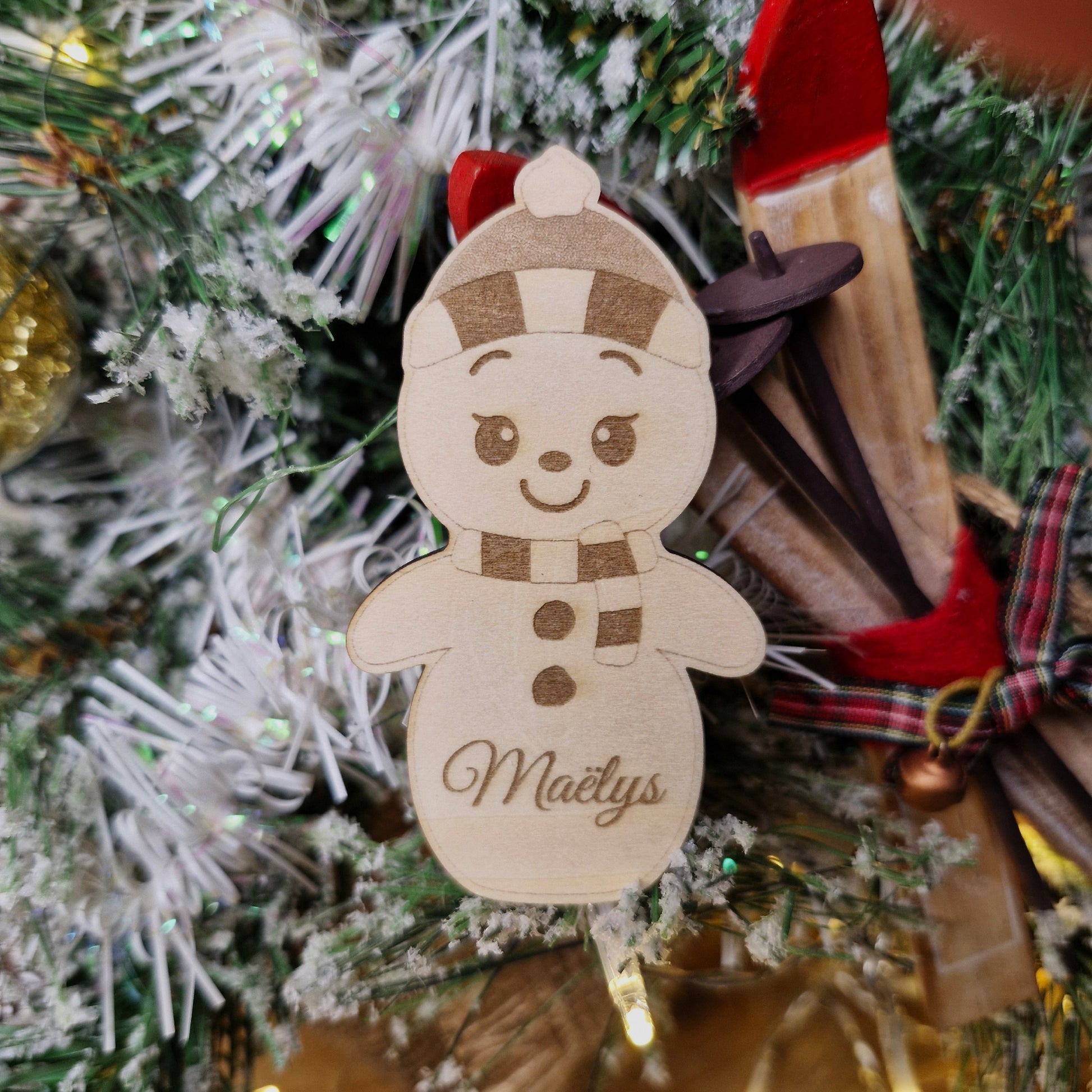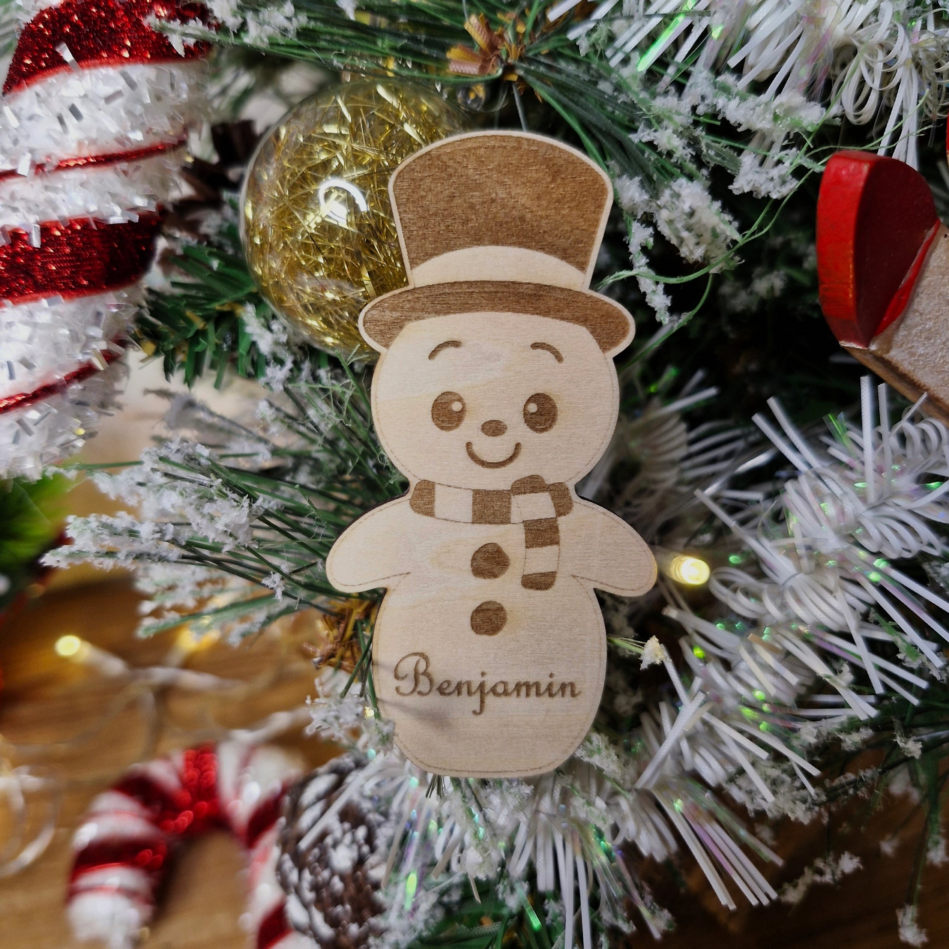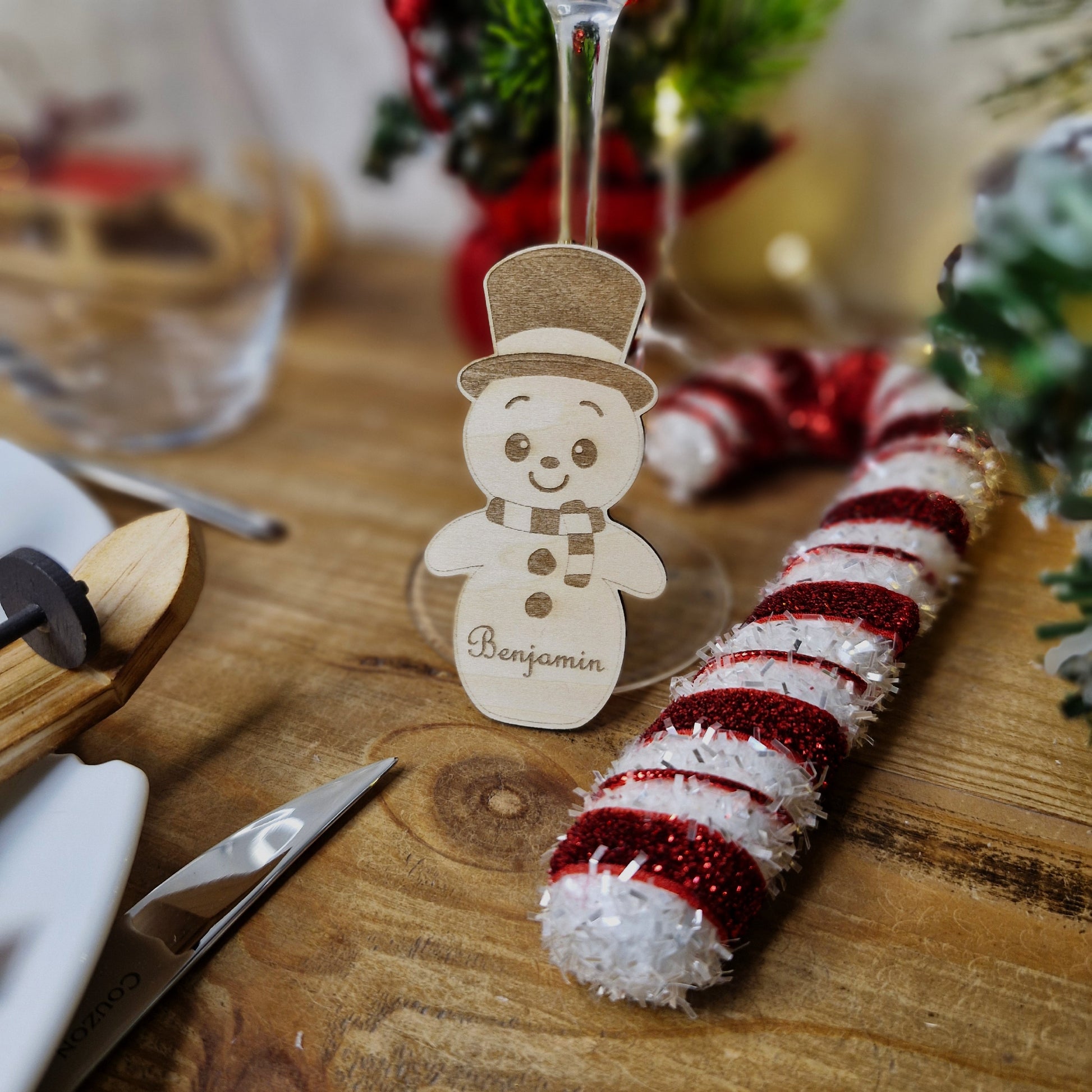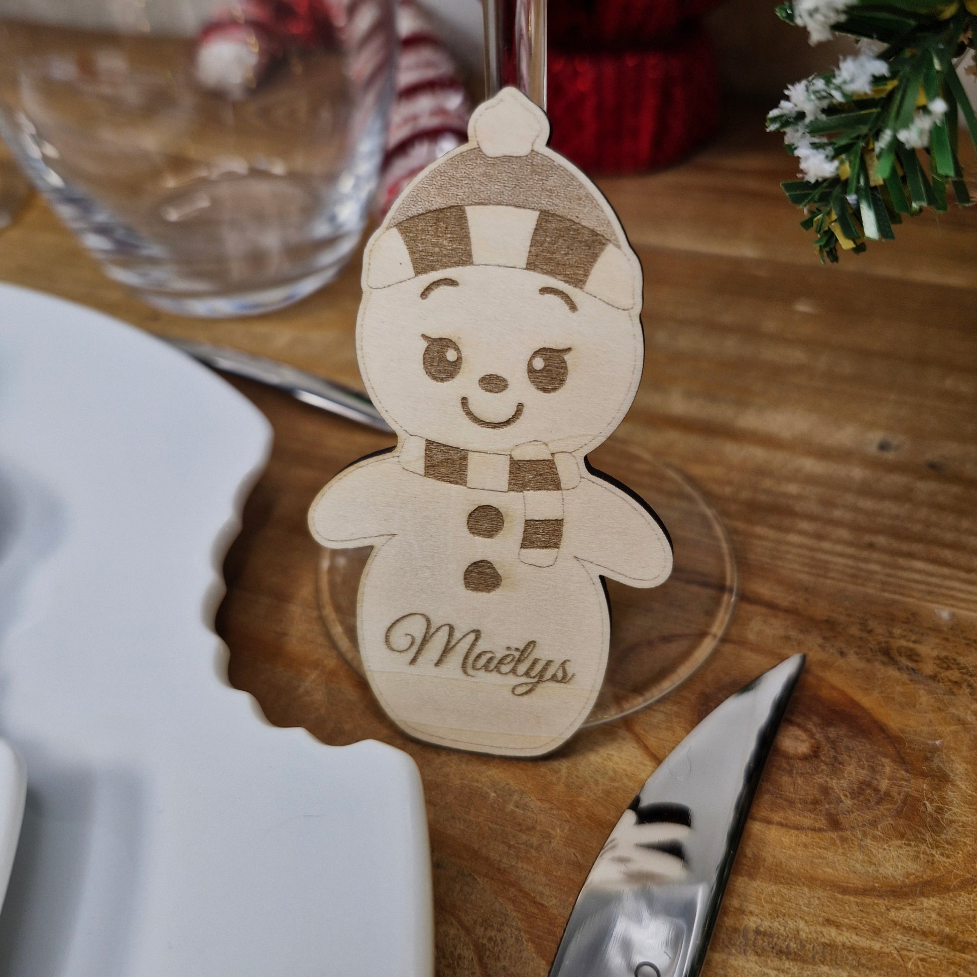 Marque-place de Noël personnalisé en bois - décoration marque place - Bonhomme de Neige